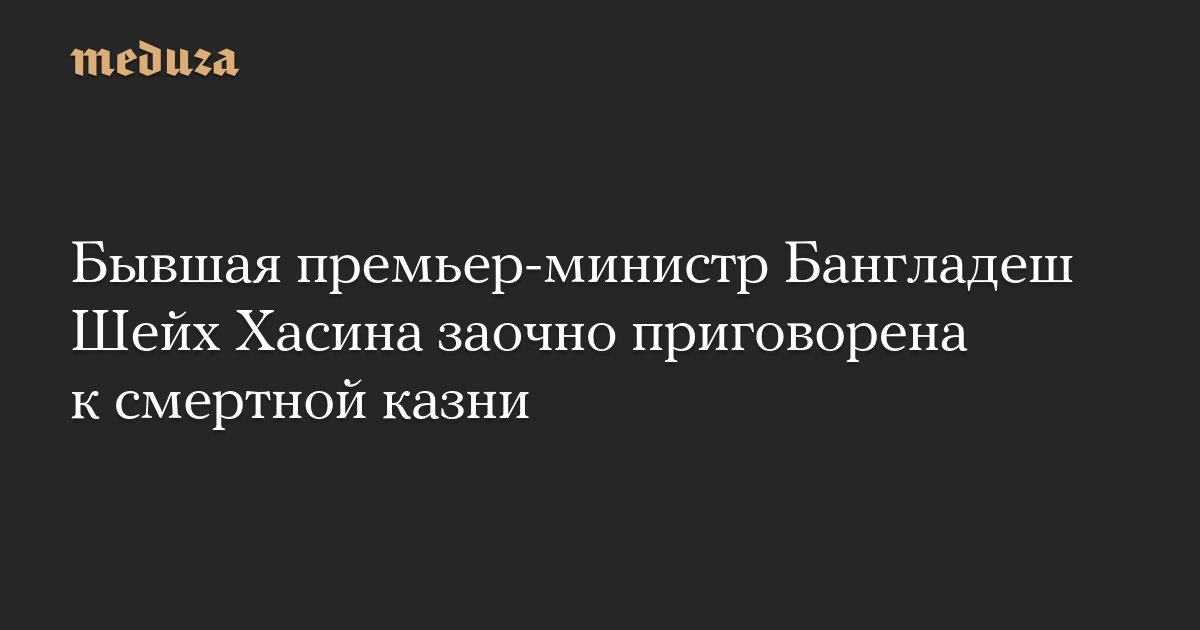 Суд в столице Бангладеш Дакке заочно приговорил бывшего премьера страны Шейх Хасину к смертной казни по обвинению в преступлениях против человечности, связанных с жестоким подавлением протестов в 2024 году.