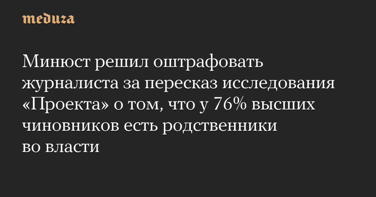 Минюст решил оштрафовать журналиста за пересказ исследования «Проекта» о том, что у 76% высших чиновников есть родственники во власти