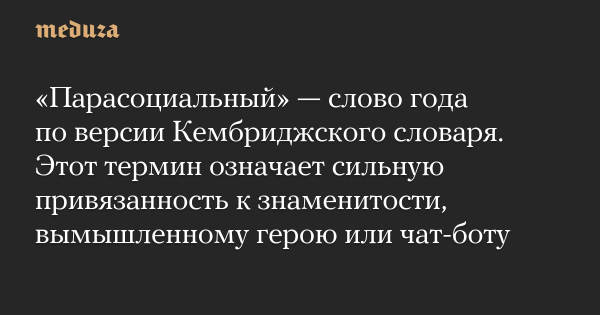 «Парасоциальный» — слово года по версии Кембриджского словаря. Этот термин означает сильную привязанность к знаменитости, вымышленному герою или чат-боту