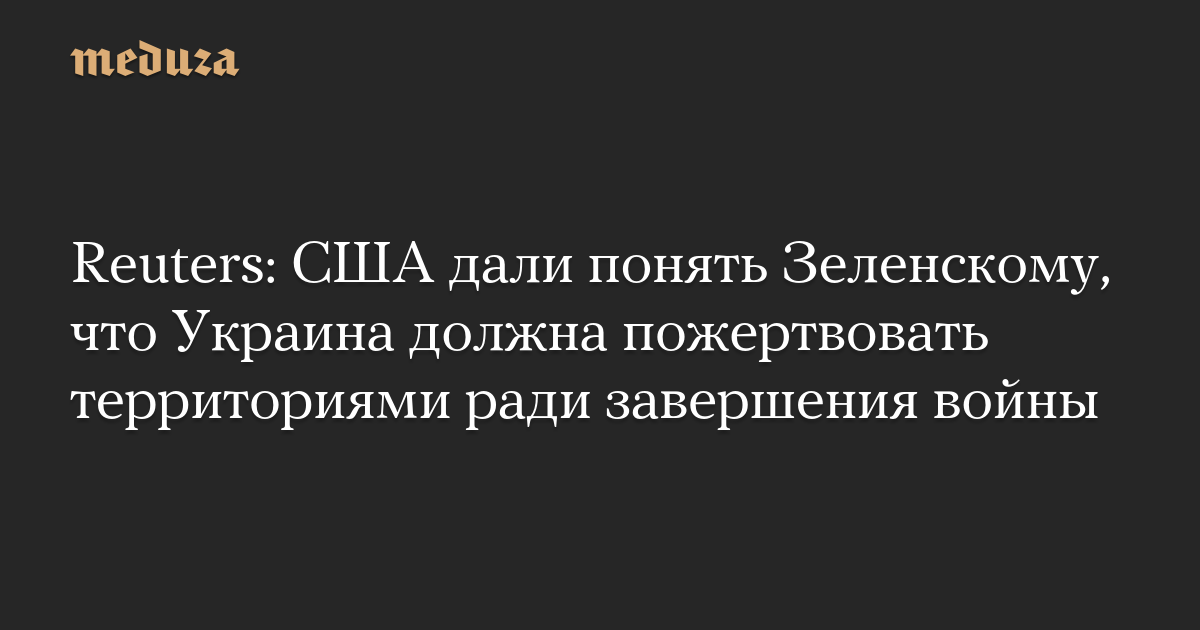 Reuters: США дали понять Зеленскому, что Украина должна пожертвовать территориями ради завершения войны
