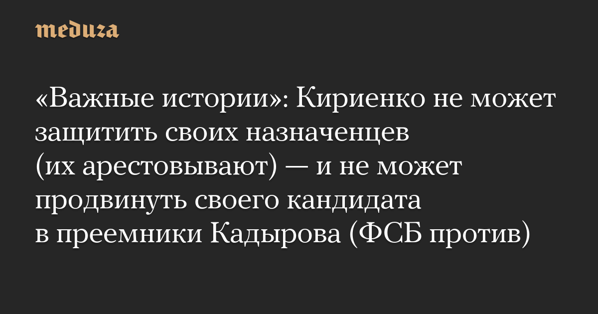 «Важные истории»: Кириенко не может защитить своих назначенцев (их арестовывают) — и не может продвинуть своего кандидата в преемники Кадырова (ФСБ против)