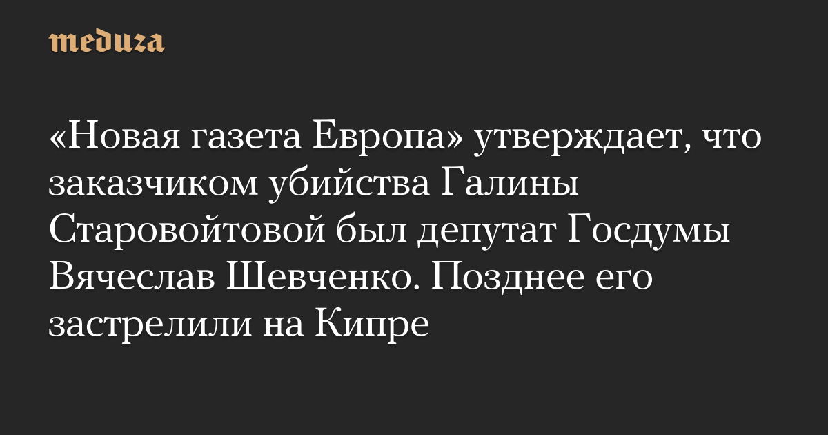 «Новая газета Европа» утверждает, что заказчиком убийства Галины Старовойтовой был депутат Госдумы Вячеслав Шевченко. Позднее его застрелили на Кипре