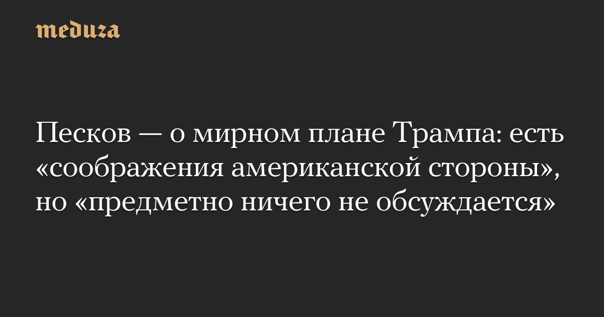 Песков — о мирном плане Трампа: есть «соображения американской стороны», но «предметно ничего не обсуждается»