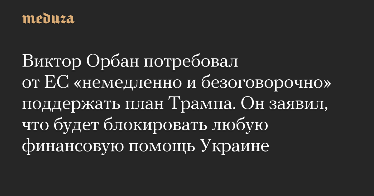 Виктор Орбан потребовал от ЕС «немедленно и безоговорочно» поддержать план Трампа. Он заявил, что будет блокировать любую финансовую помощь Украине