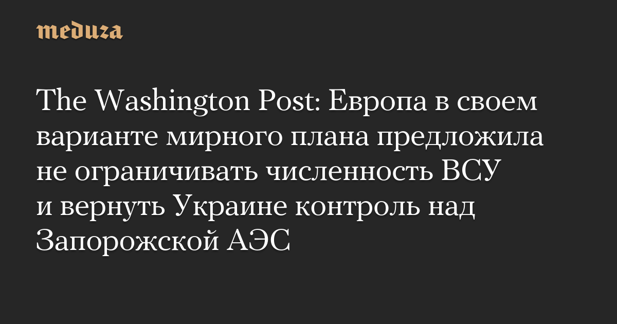 The Washington Post: Европа в своем варианте мирного плана предложила не ограничивать численность ВСУ и вернуть Украине контроль над Запорожской АЭС