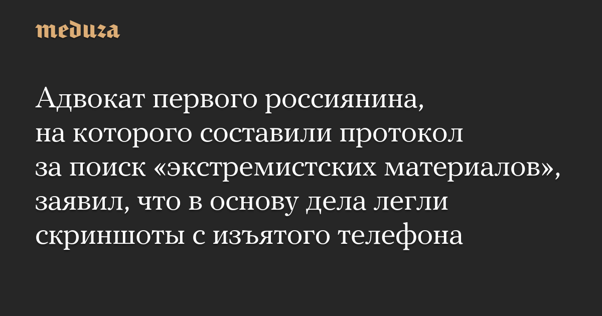 Адвокат первого россиянина, на которого составили протокол за поиск «экстремистских материалов», заявил, что в основу дела легли скриншоты с изъятого телефона