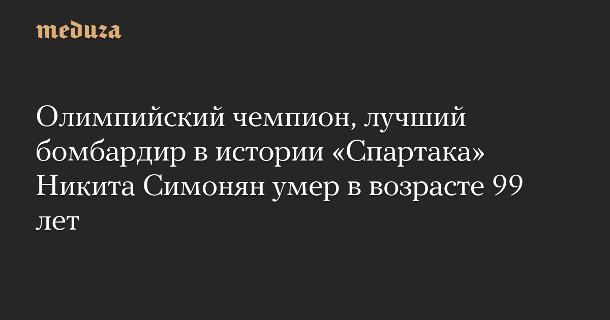 Олимпийский чемпион, лучший бомбардир в истории «Спартака» Никита Симонян умер в возрасте 99 лет