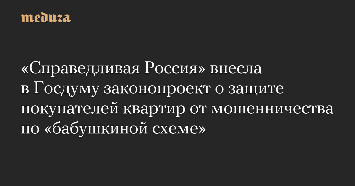 «Справедливая Россия» внесла в Госдуму законопроект о защите покупателей квартир от мошенничества по «бабушкиной схеме»