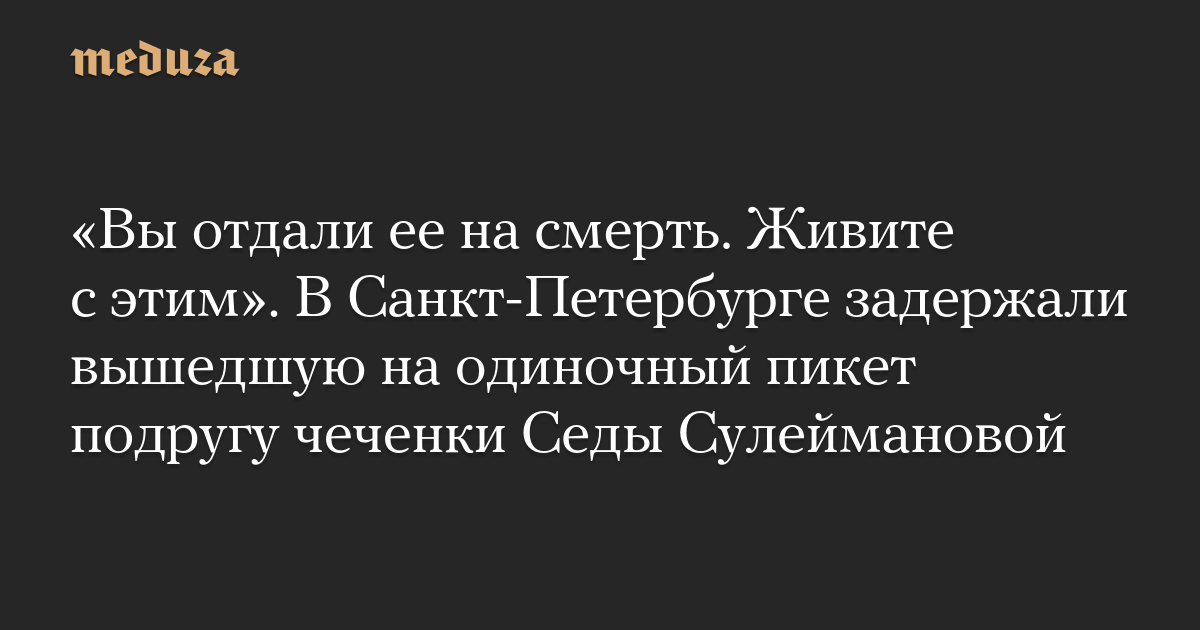 «Вы отдали ее на смерть. Живите с этим». В Санкт-Петербурге задержали вышедшую на одиночный пикет подругу чеченки Седы Сулеймановой