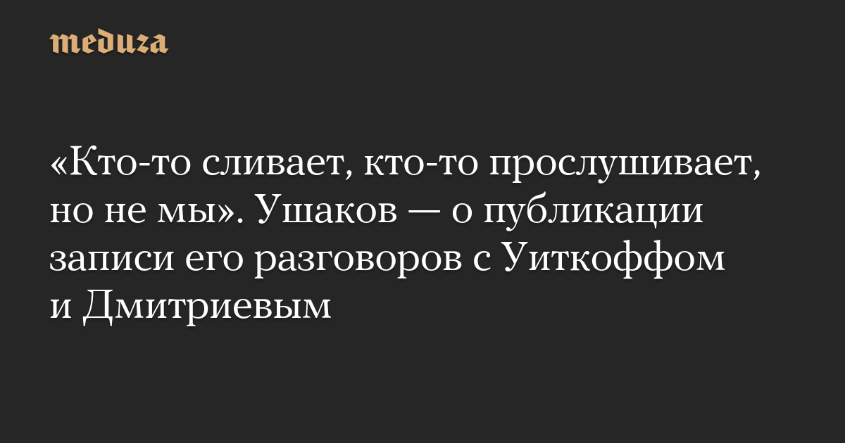 Ушаков не ответил прямо на вопрос, фейк его разговор с Уиткоффом или он действительно был. Он отметил, что достаточно часто разговаривает со спецпосланником Трампа, но содержание этих разговоров не комментирует. По мнению Ушакова, подобные утечки публикуют, «чтобы помешать». «Вряд ли они это делают, чтобы улучшить отношения», — добавил помощник российского президента.