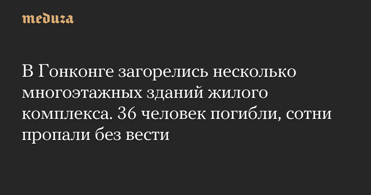 Обновление. 36 человек погибли, 29 попали в больницы в результате пожара в жилом комплексе в Гонконге, сообщает South China Morning Post со ссылкой на местные власти. Еще 279 человек числятся пропавшими без вести.