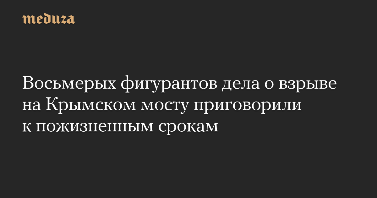 Южный окружной военный суд в Ростове-на-Дону приговорил восьмерых фигурантов дела о взрыве на Крымском мосту в октябре 2022 года к пожизненным срокам, передает «Медиазона».