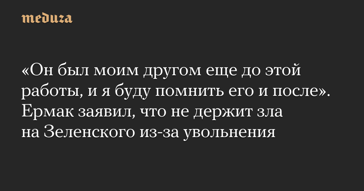 «Он был моим другом еще до этой работы, и я буду помнить его и после». Ермак заявил, что не держит зла на Зеленского из-за увольнения