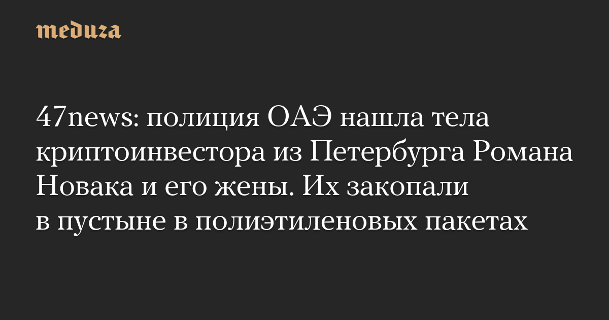 47news: полиция ОАЭ нашла тела криптоинвестора из Петербурга Романа Новака и его жены. Их закопали в пустыне в полиэтиленовых пакетах