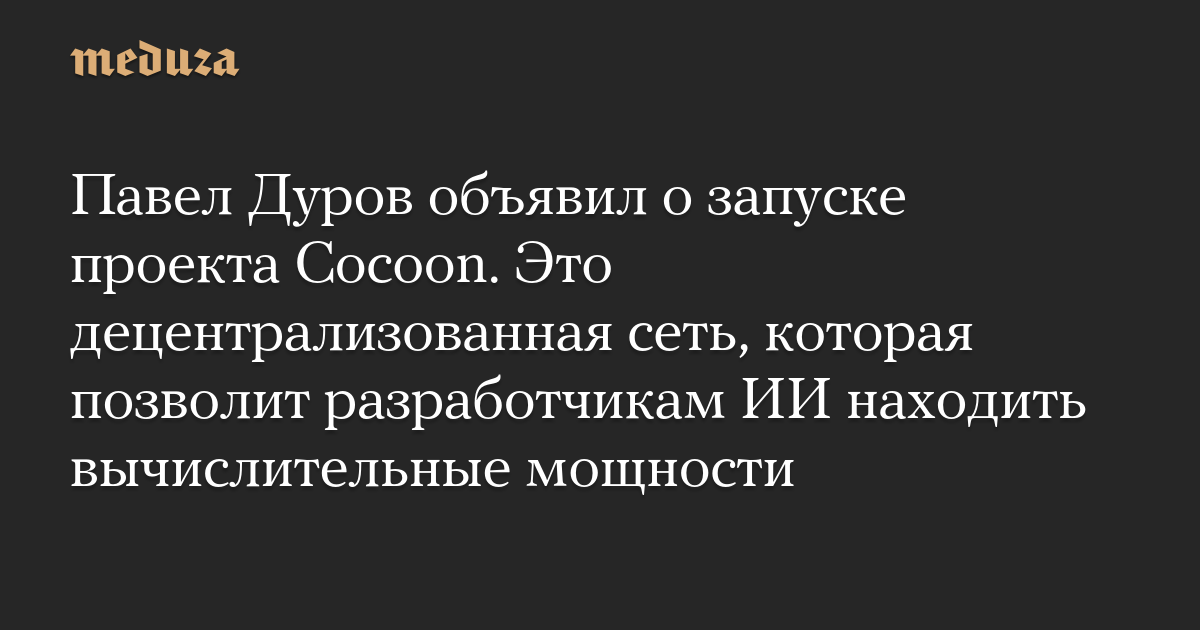 Основатель Telegram Павел Дуров объявил о запуске проекта Cocoon («Кокон») — децентрализованной вычислительной сети.