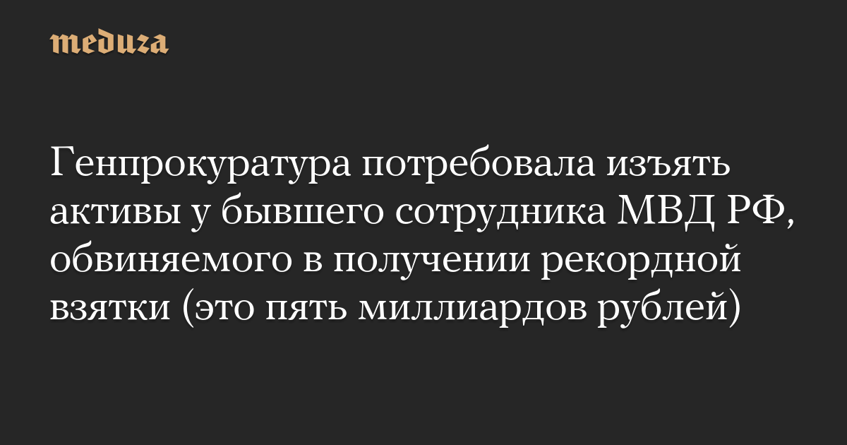 Генпрокуратура потребовала изъять активы у бывшего сотрудника МВД РФ, обвиняемого в получении рекордной взятки (это пять миллиардов рублей)