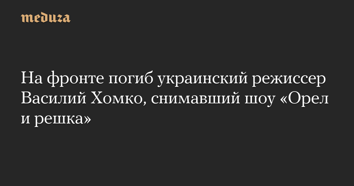 Режиссер телевизионного шоу о путешествиях «Орел и решка» Василий Хомко, воевавший в рядах ВСУ, погиб на фронте. О гибели сообщили его жена Галина Спивак и сестра Алена Хомко.