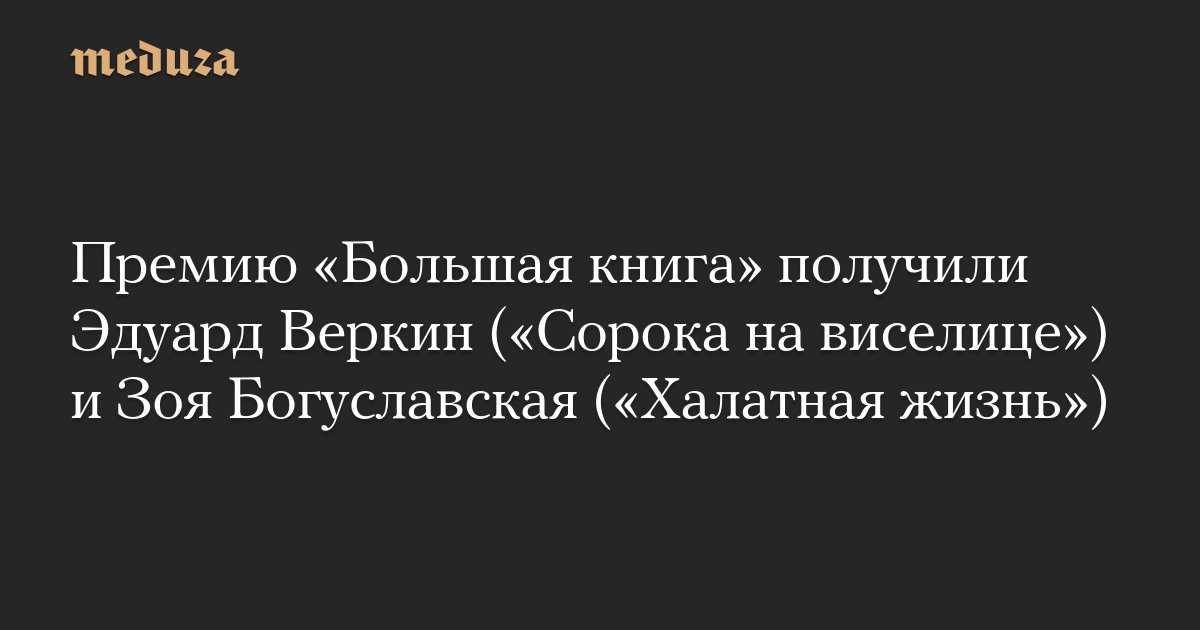 Премию «Большая книга» получили Эдуард Веркин («Сорока на виселице») и Зоя Богуславская («Халатная жизнь»)