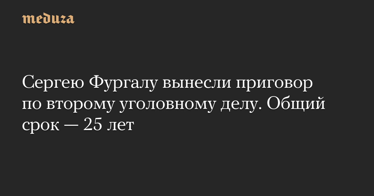 Сергею Фургалу вынесли приговор по второму уголовному делу. Общий срок — 25 лет