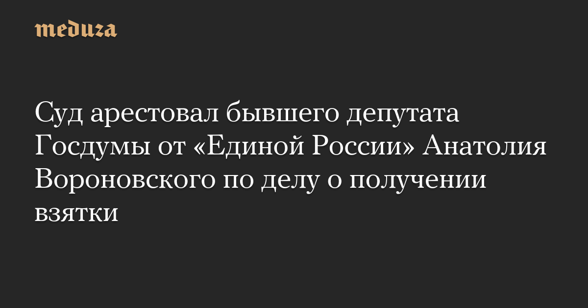 Суд арестовал бывшего депутата Госдумы от «Единой России» Анатолия Вороновского по делу о получении взятки