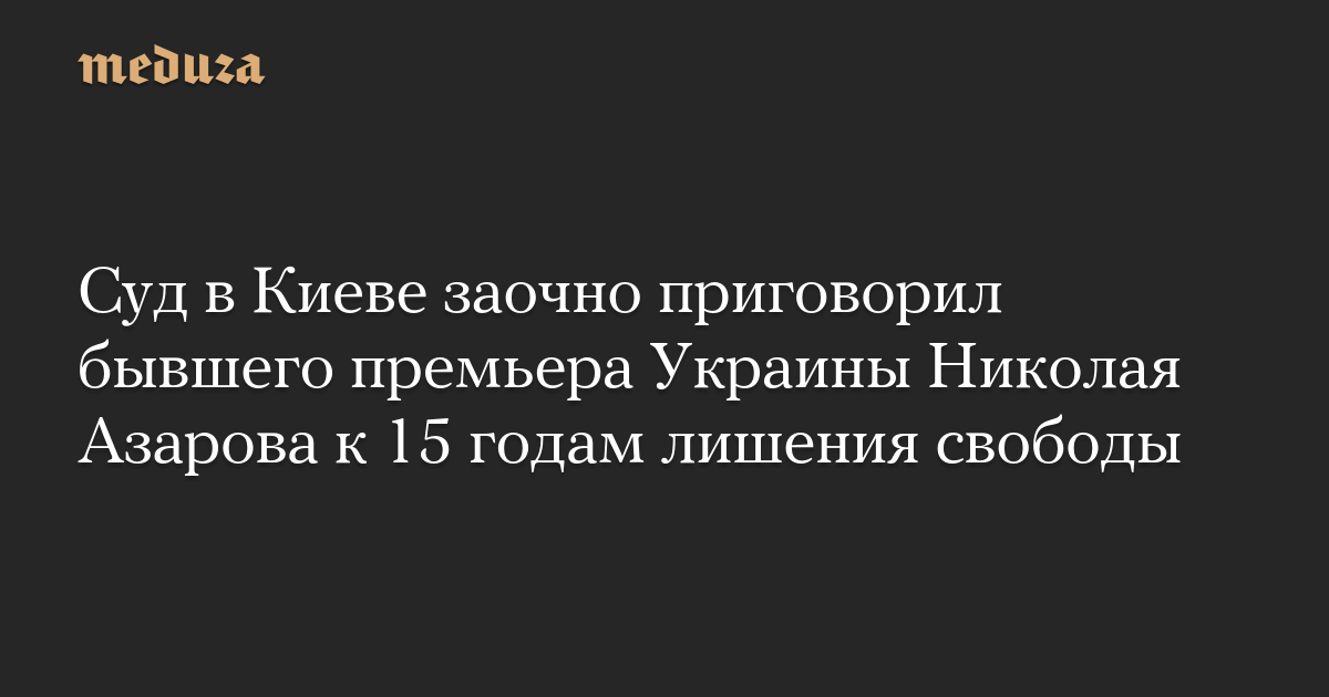 Печерский районный суд Киева заочно приговорил бывшего премьер-министра Украины Николая Азарова к 15 годам лишения свободы с конфискацией всего имущества, сообщает «Суспiльне».