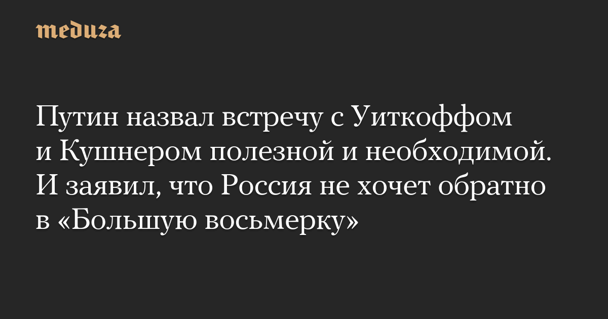Путин назвал встречу с Уиткоффом и Кушнером полезной и необходимой. И заявил, что Россия не хочет обратно в «Большую восьмерку»