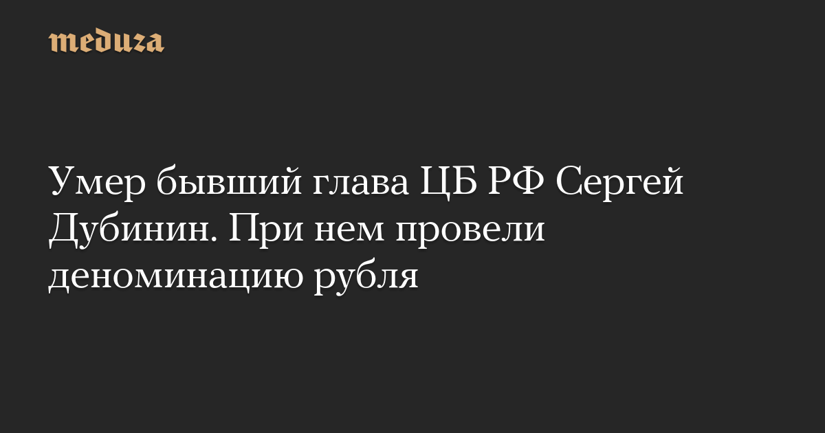Умер бывший глава ЦБ РФ Сергей Дубинин. При нем провели деноминацию рубля