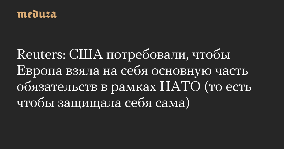 Reuters: США потребовали, чтобы Европа взяла на себя основную часть обязательств в рамках НАТО (то есть чтобы защищала себя сама)