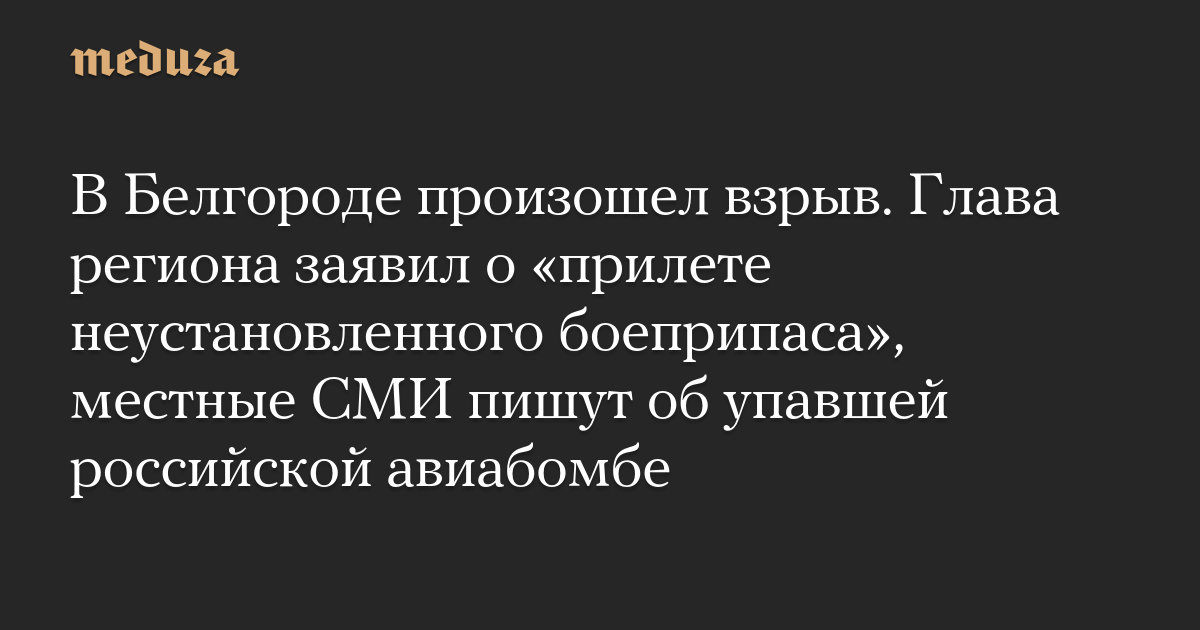 В Белгороде произошел взрыв. Глава региона заявил о «прилете неустановленного боеприпаса», местные СМИ пишут об упавшей российской авиабомбе