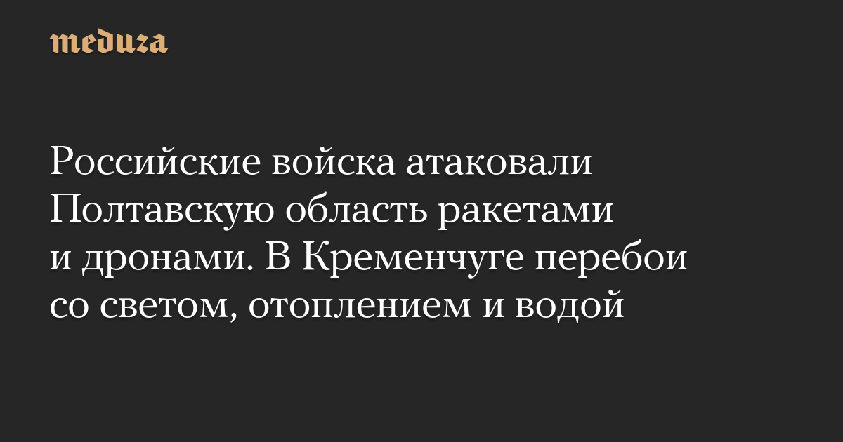 Российские войска атаковали Полтавскую область ракетами и дронами. В Кременчуге перебои со светом, отоплением и водой