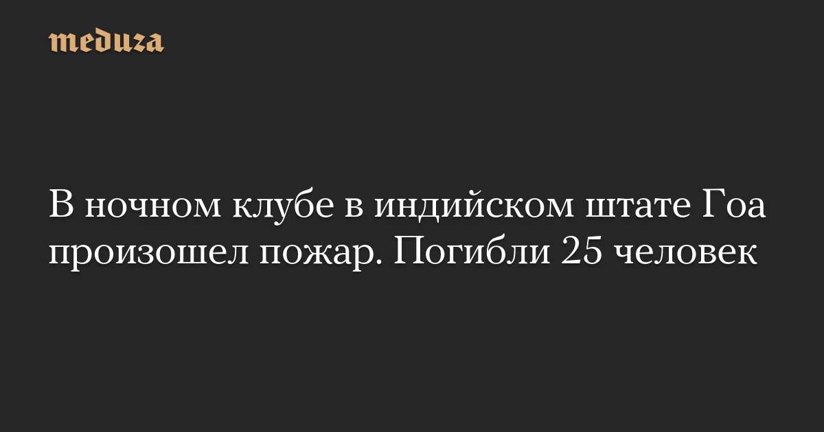 Как минимум 25 человек погибли в результате пожара в ночном клубе в индийском штате Гоа, сообщает The Guardian.