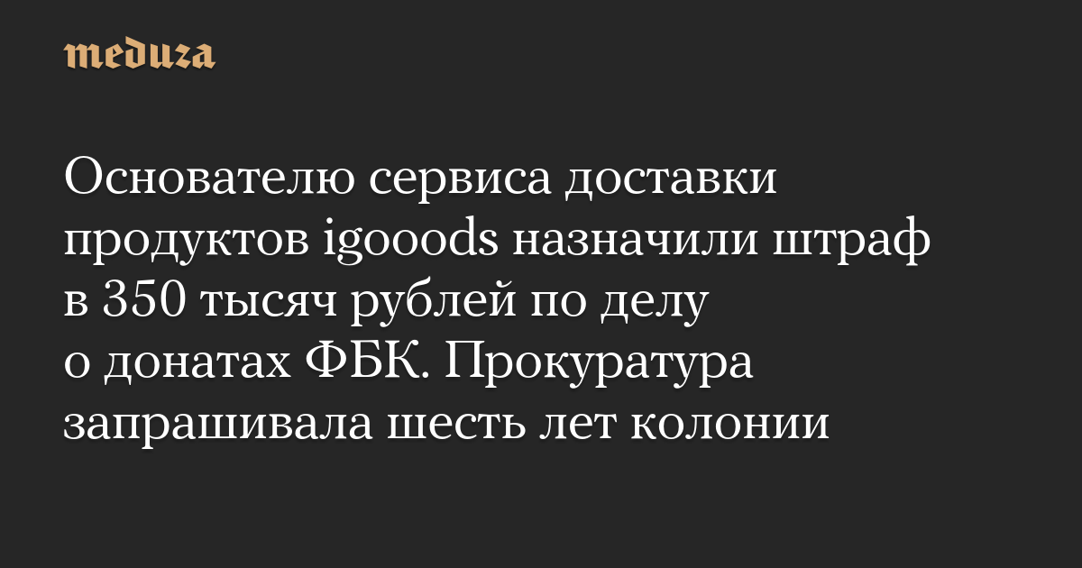 Основателю сервиса доставки продуктов igooods назначили штраф в 350 тысяч рублей по делу о донатах ФБК. Прокуратура запрашивала шесть лет колонии