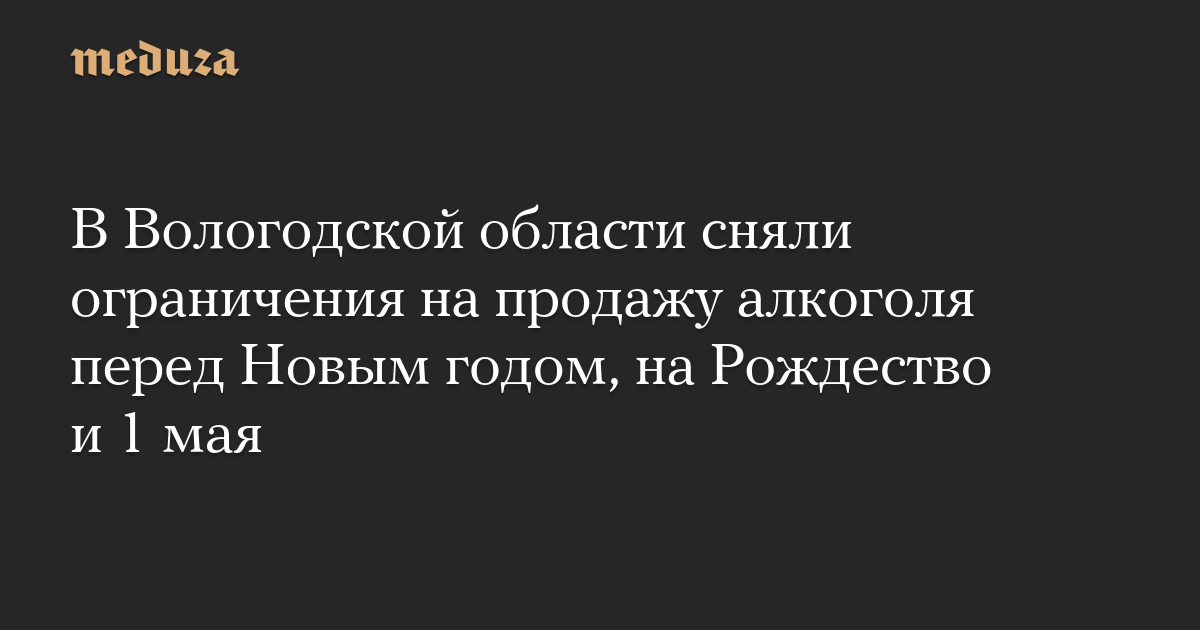 В Вологодской области сняли ограничения на продажу алкоголя перед Новым годом, на Рождество и 1 мая