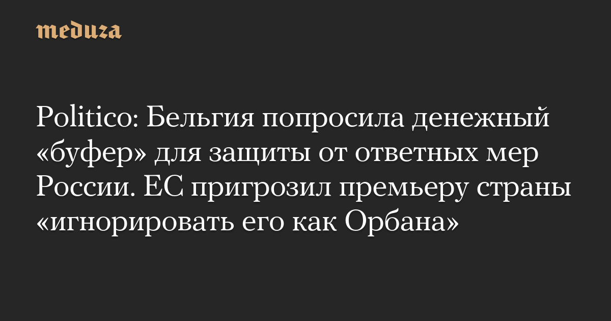 Politico: Бельгия попросила денежный «буфер» для защиты от ответных мер России. ЕС пригрозил премьеру страны «игнорировать его как Орбана»
