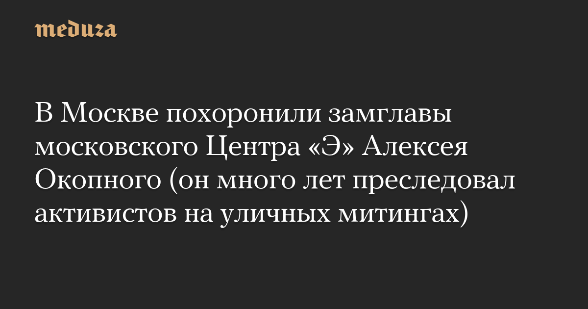 В Москве похоронили замглавы московского Центра «Э» Алексея Окопного (он много лет преследовал активистов на уличных митингах)