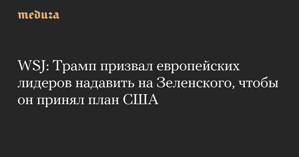 WSJ: Трамп призвал европейских лидеров надавить на Зеленского, чтобы он принял план США