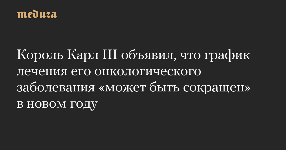 Король Карл III объявил, что график лечения его онкологического заболевания «может быть сокращен» в новом году