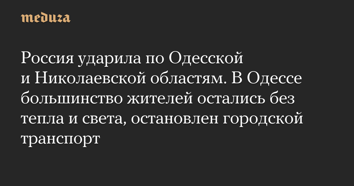 Россия ударила по Одесской и Николаевской областям. В Одессе большинство жителей остались без тепла и света, остановлен городской транспорт