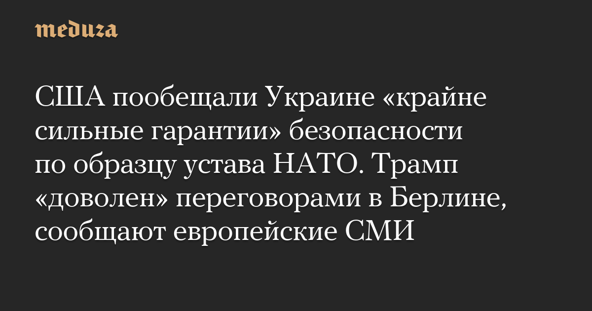 США пообещали Украине «крайне сильные гарантии» безопасности по образцу устава НАТО. Трамп «доволен» переговорами в Берлине, сообщают европейские СМИ