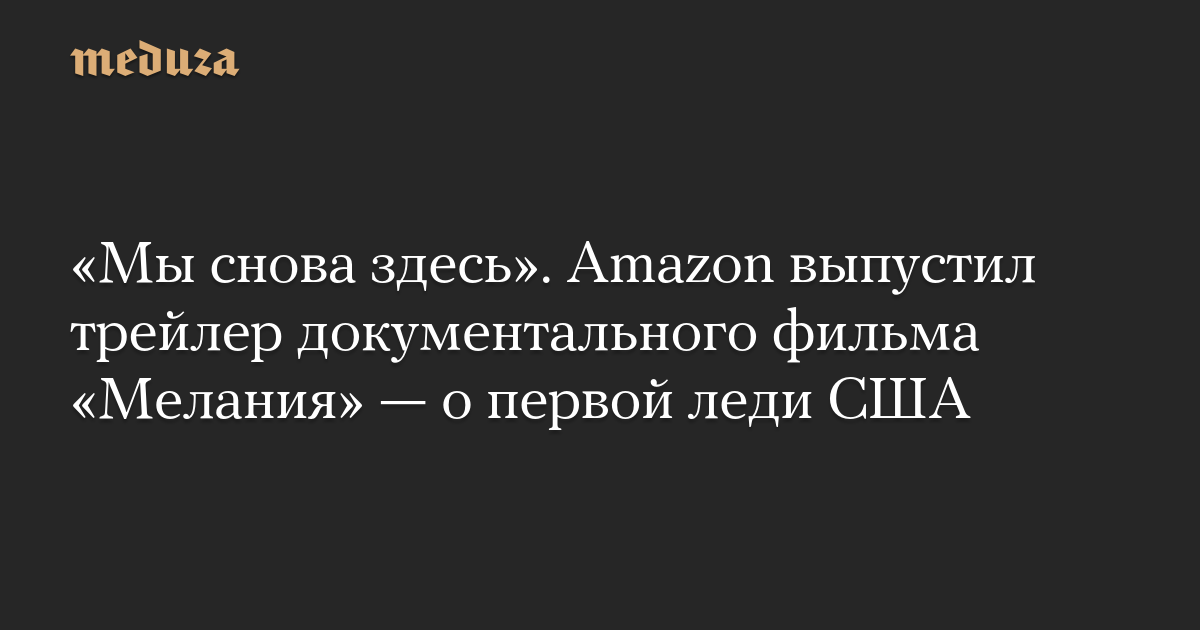 «Мы снова здесь». Amazon выпустил трейлер документального фильма «Мелания» — о первой леди США