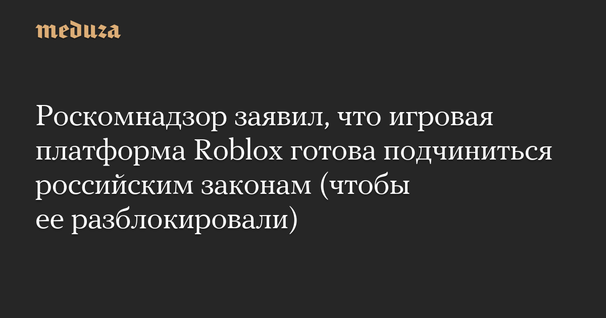 Роскомнадзор заявил, что игровая платформа Roblox готова подчиниться российским законам (чтобы ее разблокировали)