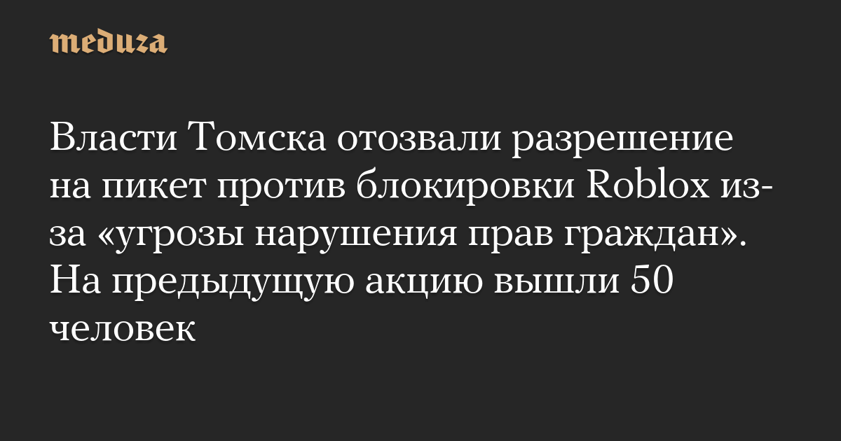 Власти Томска отозвали разрешение на пикет против блокировки Roblox из-за «угрозы нарушения прав граждан». На предыдущую акцию вышли 50 человек