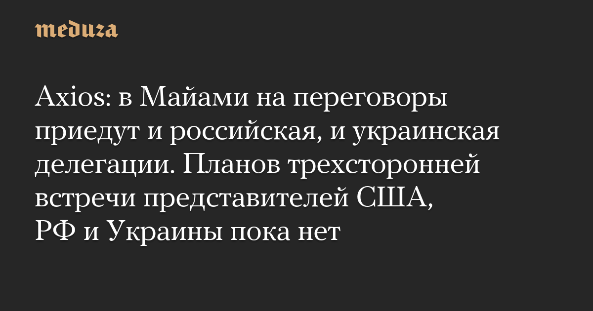 Axios: в Майами на переговоры приедут и российская, и украинская делегации. Планов трехсторонней встречи представителей США, РФ и Украины пока нет