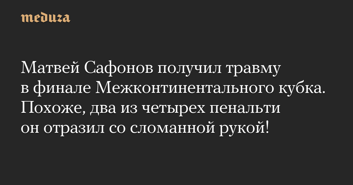 Матвей Сафонов получил травму в финале Межконтинентального кубка. Похоже, два из четырех пенальти он отразил со сломанной рукой!