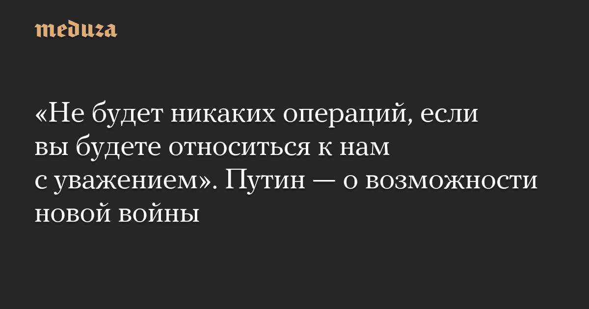 «Не будет никаких операций, если вы будете относиться к нам с уважением». Путин — о возможности новой войны