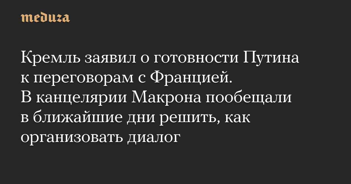 Кремль заявил о готовности Путина к переговорам с Францией. В канцелярии Макрона пообещали в ближайшие дни решить, как организовать диалог