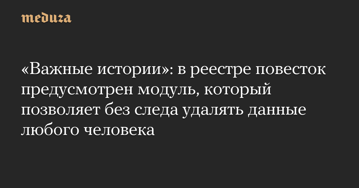 «Важные истории»: в реестре повесток предусмотрен модуль, который позволяет без следа удалять данные любого человека