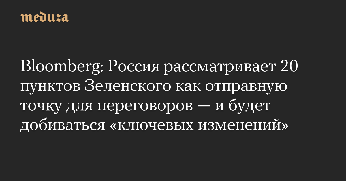 Bloomberg: Россия рассматривает 20 пунктов Зеленского как отправную точку для переговоров — и будет добиваться «ключевых изменений»