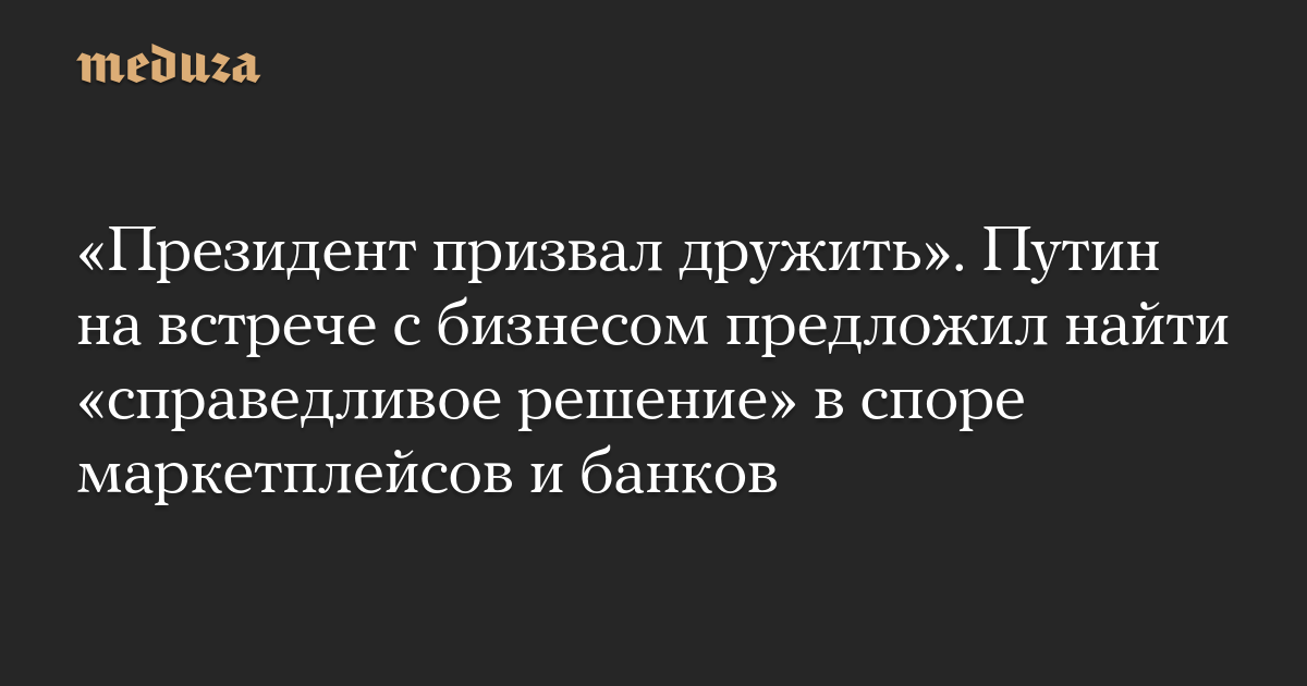 «Президент призвал дружить». Путин на встрече с бизнесом предложил найти «справедливое решение» в споре маркетплейсов и банков