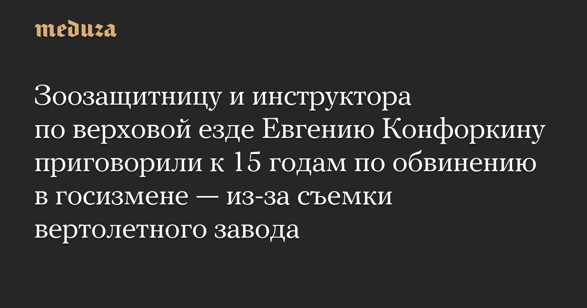 Зоозащитницу и инструктора по верховой езде Евгению Конфоркину приговорили к 15 годам по обвинению в госизмене — из-за съемки вертолетного завода
